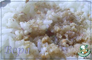 Смешать ореховую массу с рисом, добавить изюм. -