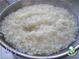 Откинуть рис на сито, чтоб стекла вода.