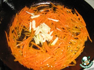 Обжариваем быстро на раскалённом масле, добавляем чеснок, перец.