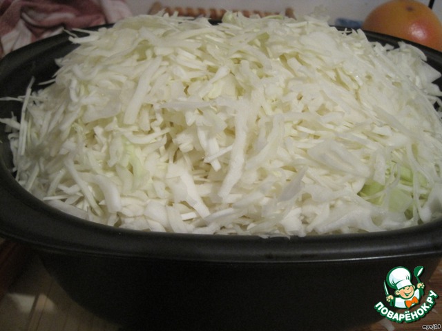 Достать капусту и обязательно перемешать, дать выйти пару и горечи из капусты. Она дала «усадку».