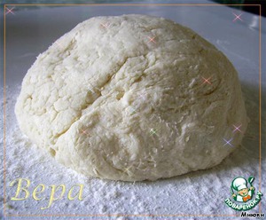 Разделить его пополам и сформировать 2 лепешки (толщиной 1,5см).