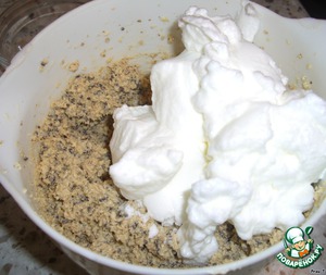 Осторожно вмешать белковую массу, сильно не старайтесь, тесто от этого будет воздушнее.