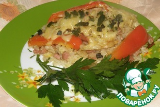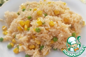 Заранее отваренный рис смешать с полученной смесью, добавить кукурузу.