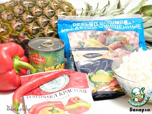 Ингредиенты для «Острый рис с креветками в ананасе по-тайски»: