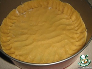 Тесто выкладываем в форму (у меня 24 см) и убираем в морозилку на 15 минут.