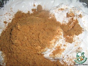 Белки взбиваем в крепкую пену. Добавляем сахар и взбиваем до устойчивых пиков. Аккуратно перемешиваем с молотым миндалем.