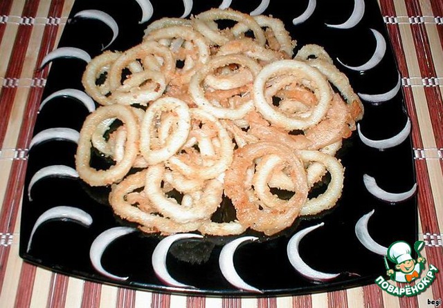 Очень интересный рецепт кальмаров с репчатым луком в кляре, попробуйте, это очень вкусно! Кляр - просто песня!