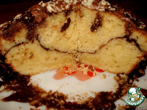 Когда кекс остыл, полила его растопленным черным шоколадом и посыпала стружкой молочно-белого шоколада, получился очень толстый слой шоколада. Можно просто посыпать сахарной пудрой.