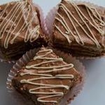 Заливаем торт шоколадной глазурью. Для глазури: 3 ст.ложки какао + 3 ст.ложки сахара + 3 ст. ложки молока. Варить до загустения. Добавить 50 гр сливочного масла.