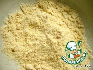 • Муку растереть с мягким сливочным маслом до состояния крошки.