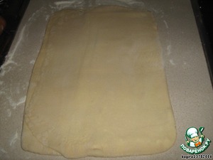 Слоеное тесто можно купить - его понадобится 500 г. Но я увидела в Инете рецепт теста, который меня заинтересовал, и решила его сделать. Очень нравится мне процесс приготовления слоеного теста. Хотя и время занимает, но и кучу дел можно переделать, пока тесто "отдыхает".