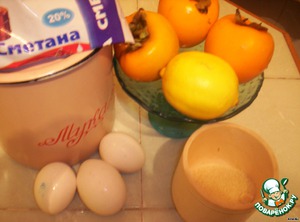 Смазать форму маслом, в форму выложить хурму, сбрызнуть ее лимонным соком, посыпать оставшимся сахаром, залить тестом и запекать в духовке 20 минут(время приблизительное, так как у всех духовки разные, так что пробуйте готовность зубочисткой)!