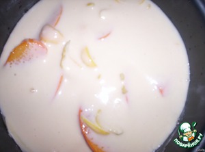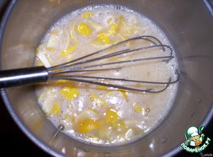 Яйца взбить с 50 гр сахара, добавить сметану, цедру, ваниль, муку и перемешать.