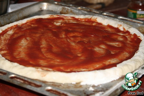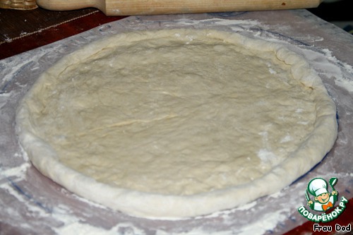 Тесто раскатать в круг, переложить на смазанный маслом противень, завернуть края, чтобы получился бортик.