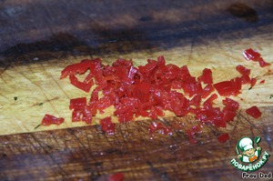 В это время готовим начинку. Очистить от семян и нарезать острый перец.