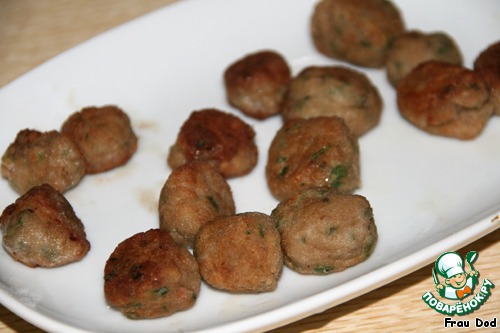 Из фарша сформировать маленькие шарики, обжарить в 2х ст.л. растительного масла до коричневого цвета. Остудить, обсушить.