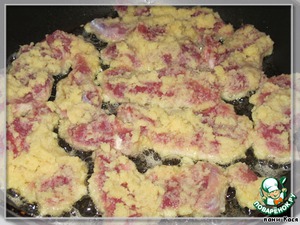 Нарезать свинину на "медальоны", отбить, посолить, посыпать приправой.