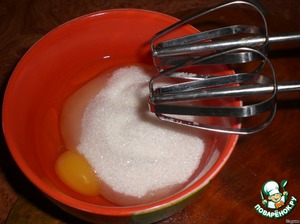 Белки от двух яиц взбить с сахаром и лимонным соком.