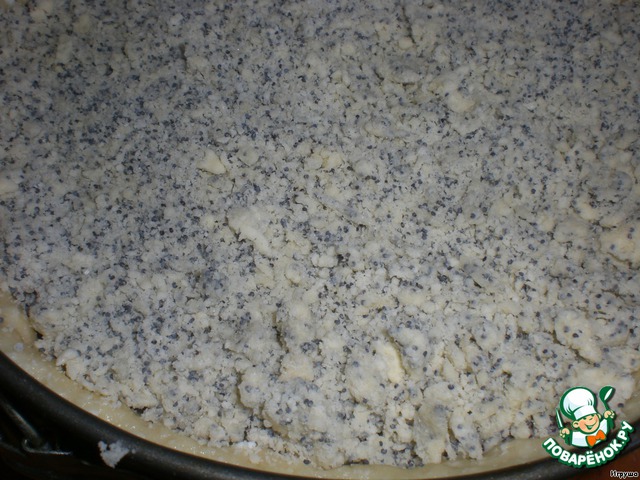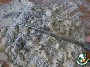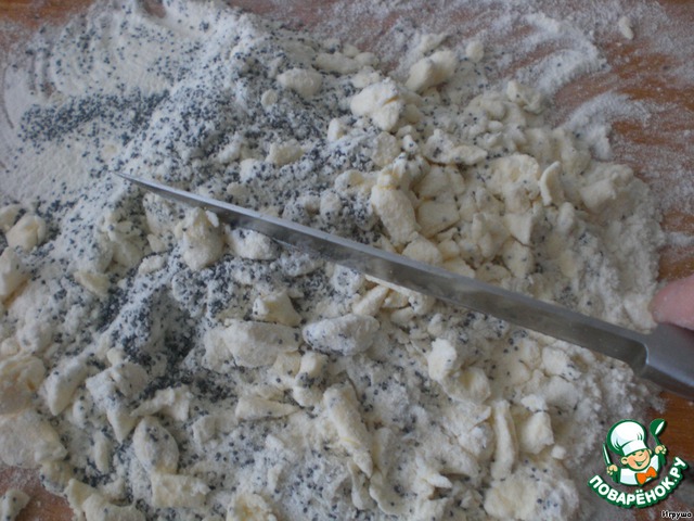 Для посыпки порубить ножом муку, масло, сахар и мак в крошку.