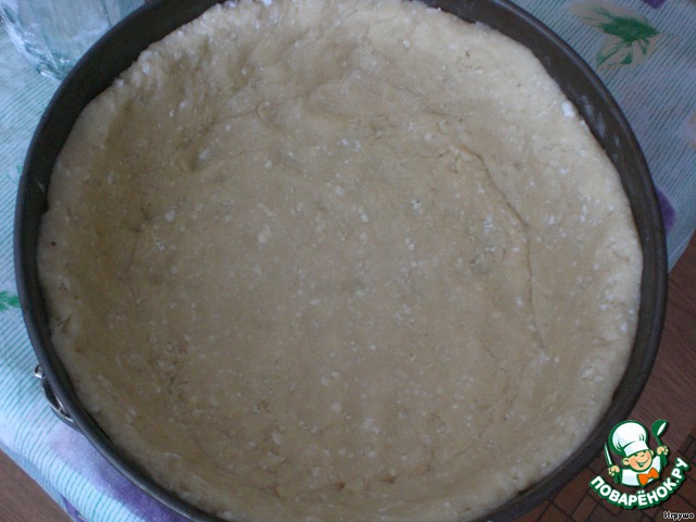 Из теста раскатать круг, выложить в форму, сделать бортик. -