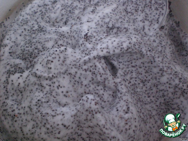 Добавить предварительно запаренный и отжатый от жидкости мак (200 г), перемешать. -