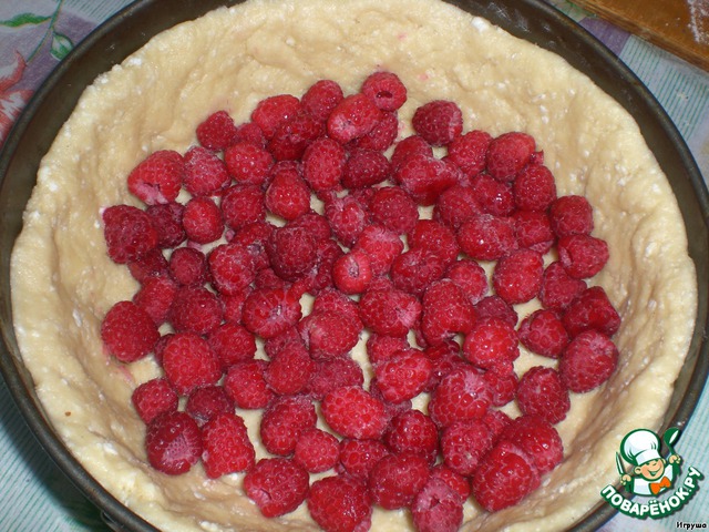 Малинку разморозить (приблизительно 350 г). Выложить на тесто.