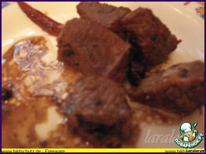 Вот, и свинина уже не та - и чем они её кормят? или чем её колют? Я тогда только поняла, почему тут ТАК много приправ... а чтоб эти продукты сделать съедобными! Одним словом, стала я мужа переводить на другие рельсы, на запасные пути: подсовывать ему то баранину, то телятину (говядину мы так и не смогли полюбить...), да экспериментировать со способами приготовления. Нелегко было его вкусы изменить - знаете, что мужчины очень трудно изменяют (тихо!тихо! - не о том речь!) - я имела своим вкусам! Но мы не ищем лёгких путей! И перед трудностями не отступаем! В очередной раз в меню телятинка... да такая получилась, что слюнки до сих пор текут, вот вина купила - повторю! Необычно нежная, да ещё со вкусом дичи, очень ароматная!