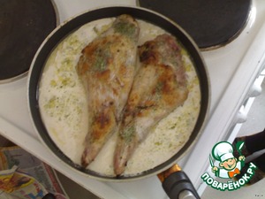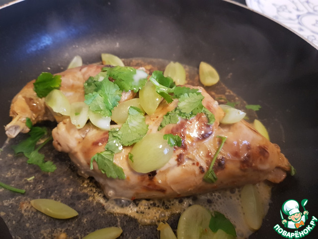 Рецепт «Кроличьи ножки в сливочно-винном соусе с виноградом»: