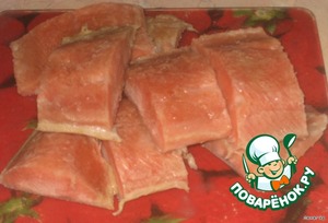 Рыбу нарезать на порционные куски, отварить около 15-20 минут (воду слегка посолить)
