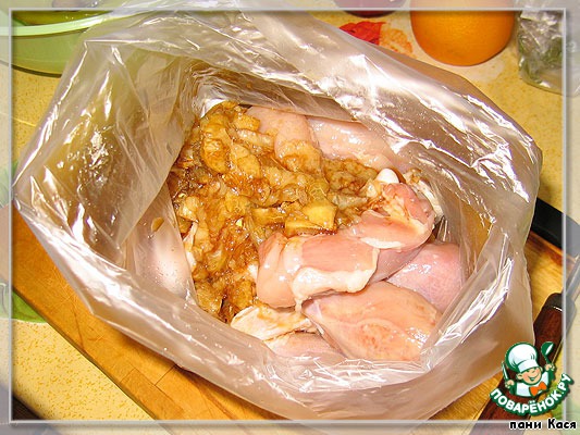 Рецепт «Курица с фруктами, запеченная в рукаве»: