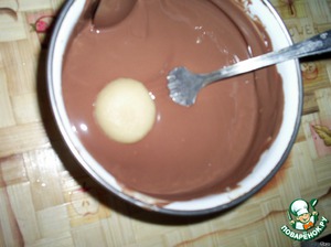 Скатываем лепешечки в шарик и окунаем в шоколад