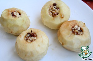 Начинить яблоки орехами с медом.