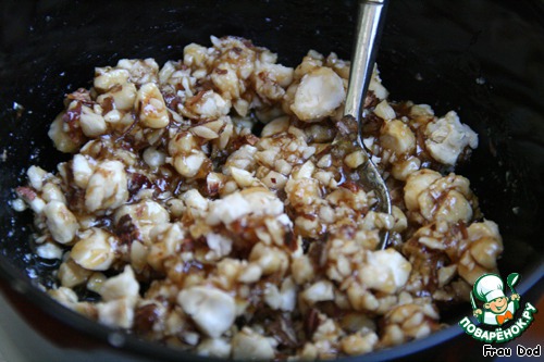 Орехи порубить, смешать с медом.