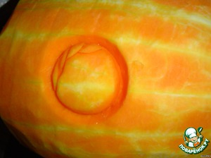 Выбираем рисунок и намечаем середину цветка, прорезаем ее и вырезаем из под нее мякоть.