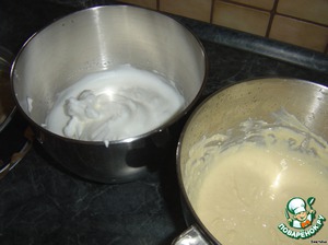 2. Взбить белки, добавить 25 г сахара и щепотку соли. Отставить в сторону.