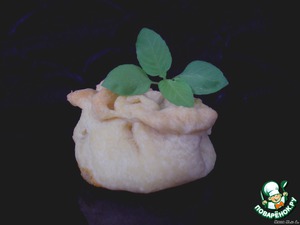 Присборить сверху узелком, подобно вонтонам. Положить их в формочки для маффинов или просто на бумагу для выпечки.