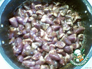 Положить сердечки в маринад, перемешать и оставить хотя бы на 30 минут.