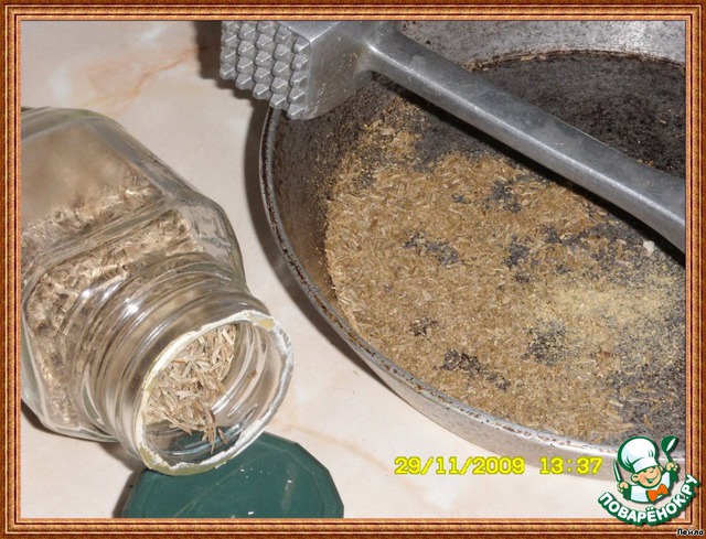 Зиру (cumin), если у Вас нет ступки (как и у меня), перетрите с помощью молотка в железной сковородке.