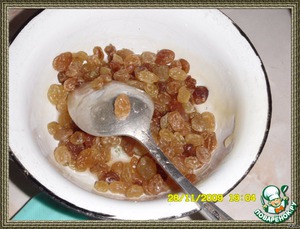Сразу чашку из-под меда не кладите мыть, переложите в нее изюм с коньяком.