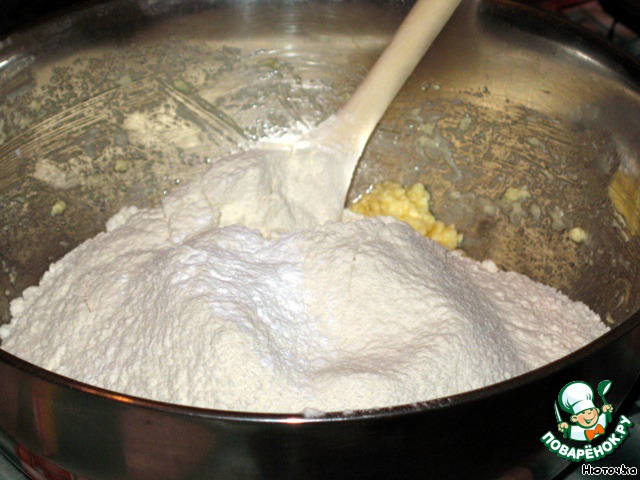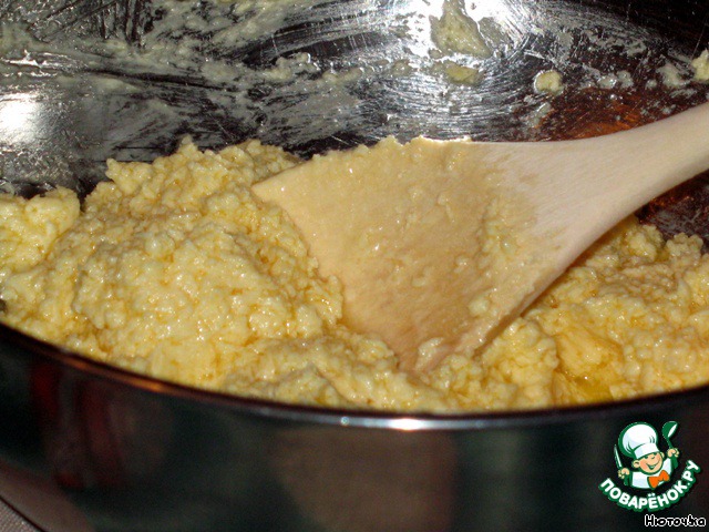 Мягкое масло, сахар, желтки смешать в однородную массу -