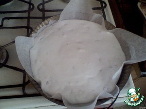 Форму застилаем пергаментной бумагой и заливаем в нее подготовленную смесь. Выпекаем 2 - 2, 5 часа.
