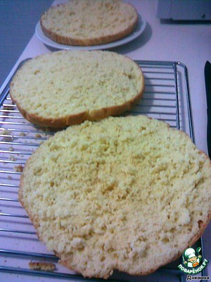 Остывший корж режем на 3 части.
