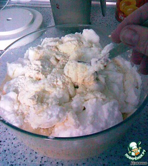 Соединяем, очень нежно, взбитые белки с желтками.