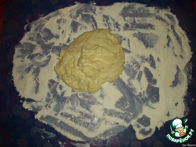 Готовое тесто нужно охладить в течении 30 минут. Прямо в миске можно поставить в холодильник или скатать в шар и, завернув в целлофан, отправить на балкон.