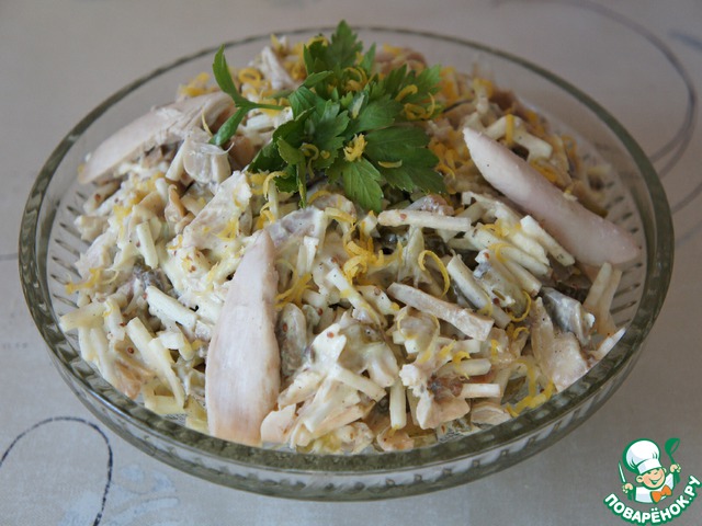 Замечательный, довольно простой и сытный салат из корня сельдерея, подсмотренный в одной из кулинарных передач.