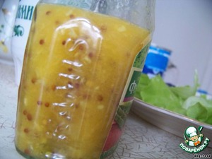 Добавляем горчицу (я брала французскую) и масло, тщательно перемешиваем. -