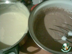 Выкладывать тесто ложкой, чередуя по цвету. Одна полоска светлого, вторая-с какао. -