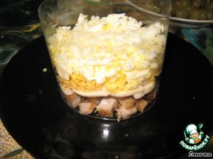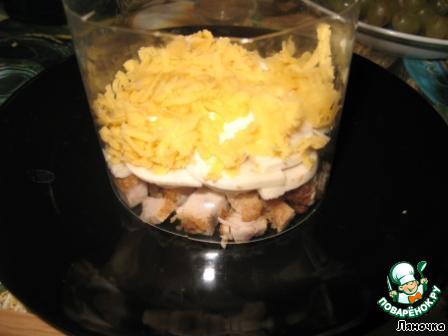 Итак, первый слой - порезанная небольшими кубиками курочка.