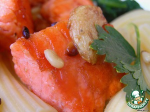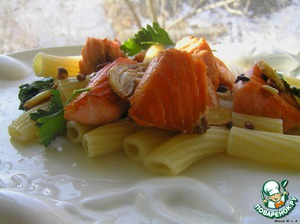 Рецепт «Паста с лососем, кедровыми орешками, чесноком и шпинатом»: