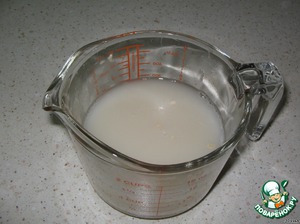 Разводим дрожжи в теплой воде. Я брала воду газированную (в тесте происходит какая-то химическая реакция, и оно делается, ну просто воздушным)и сухие дрожжи Dr. Oetker (приблизительно 4 г), т.к. не оказалось у меня свежих.